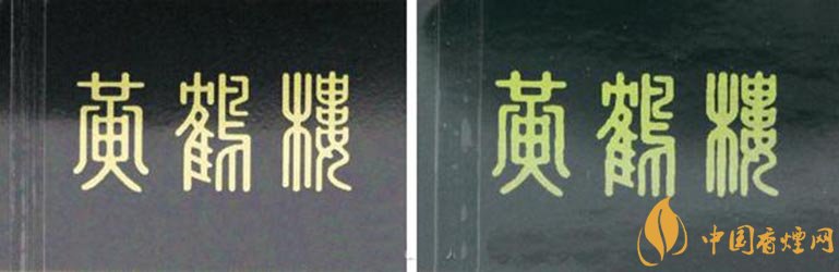 盒包側(cè)面“黃鶴樓”文字對比:真品卷煙字體清晰,文字邊緣呈規(guī)則鋸齒形。假煙文字粗糙,文字邊緣無鋸齒,有毛刺。