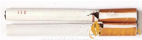 真品鋼印為動態打印,整體鋼印深淺不一,高低不平,間距不等,每個鋼印也呈深淺不一,鋼印筆畫較細;假煙鋼印為靜態打印,整體鋼印排列整齊,深淺一致,鋼印筆畫較粗,與真品特征存在明顯差異。