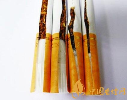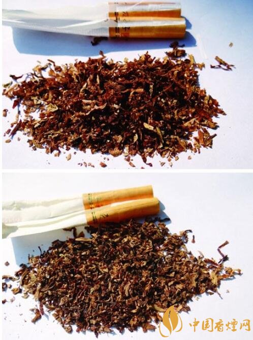 真品煙絲切絲寬度均勻一致,煙絲油潤性好,有彈性,顏色呈金黃色;假煙煙絲切絲工藝粗糙,寬窄不一,含大量劣質煙梗片,煙末含量多,顏色呈褐色,與真品煙絲結構存在明顯差異。