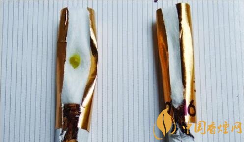 真品接裝紙嘴上有一排清晰可見的降焦打孔,濾棒中添加“增香保潤珠”,能夠達到有效降焦減害作用;假煙未采用打孔降焦,濾棒未添加“增香保潤珠”,與真品煙支特征存在顯著差異。