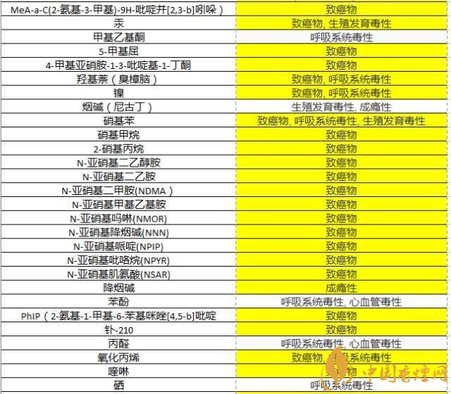 事實上,香煙里有超過7000種化學物質,其中93種明確有毒物質,78種是明確致癌物,78種!(見下表)