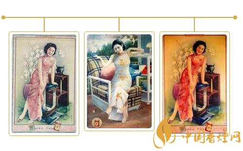 民國時(shí)期的香煙廣告,“美女”成為廣告畫中的絕對主角,使得廣告散發(fā)出誘人的女性魅力,以迎合和吸引大眾的注意力。而在當(dāng)時(shí)紅極一時(shí)的哈德門香煙,全國各大中城市的巨幅廣告牌比比皆是,觸目可及。為了促銷增收,除大張旗鼓地推出各類廣告外,還在每盒煙中配有畫片一枚,供欣賞收藏。畫面皆為摩登美女,印刷精美,色彩靚麗。畫片背面亦印有廣告詞“哈德門香煙人人愛吸”。據(jù)查,美女共有百名,這些活潑自信,燙發(fā),穿高跟鞋,旗袍高開叉的“香煙美女”,服飾發(fā)型和神態(tài)各有千秋,情態(tài)紛呈,不管是讀書、梳妝,還是玩樂,無一不讓人感受到美感帶來的視覺沖擊。一枚擁有,即思百枚。