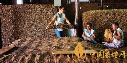 接下來是第二道工序,把葉片取下來后分類,將其堆成一米高左右,覆上麻布利用葉片中殘存的水份引發初次發酵。這道工序目的是使煙葉的顏色更為一致,但關鍵是要在35-40天內把溫度控制在35度以下。這2到3個月里所有工藝最大的作用在于將茄衣的含油量和色澤控制在理想的范圍內。