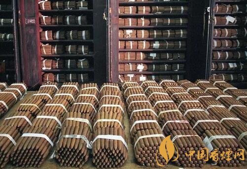 以前雪茄金庫是一個雪茄工廠的財富中心,這里存儲雪茄工廠最優質的雪茄,不管多么昂貴的雪茄都是從這里出去的。金庫的結構其實非常簡單,主要的裝置就是雪松的木架或者雪松的抽屜,雪茄卷制完成之后,通常是50支雪茄未一捆,用紙或者是綢帶包扎起來,一摞摞放在雪松木架里面,每隔一段時間檢查一下雪茄的狀態,同時會調整一下雪茄的擺放位置,來確保所有的雪茄都能有最佳的醇化結果。整個雪茄金庫里面通常嚴格保持在溫度16至20°C和65至70%相對濕度,這點根據里面保存雪茄的年份、大小、煙葉濃郁度等等會有不同。