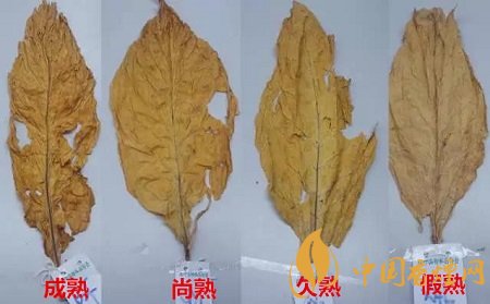 (1)完熟指上部煙葉在田間及調制后達到高度成熟。其外觀特征是葉片疏松、油分少、葉質較干燥,葉面皺疊,顆粒多,多為桔黃和紅棕色煙葉,并有明顯的成熟斑,常帶有赤星病斑或焦尖、糊邊,聞香突出。