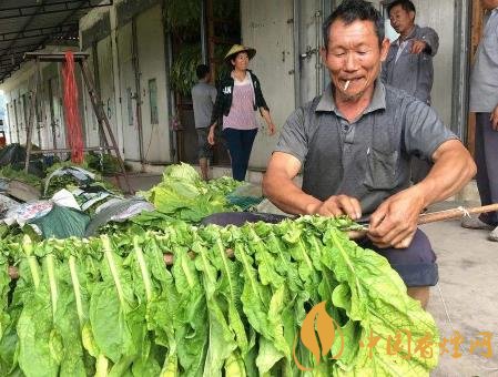 當煙葉有綠色變為淡黃,用手捏一下特粘時即可收獲。用煙刀每個葉帶煙拐割下后,在對置一天后即可上繩上架晾曬,在晾曬時要每隔幾天翻動一次,使里外煙葉都曬成黃紅色,提高煙葉質量。