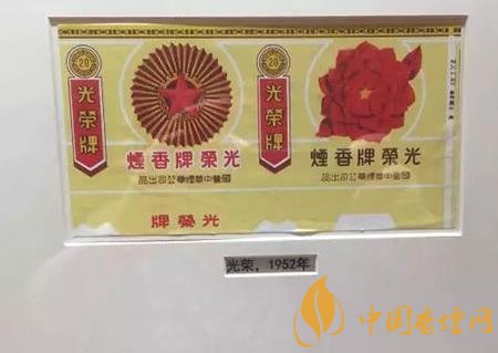 ——光榮牌,1951年國營中華煙草公司創牌,品名意為“志愿軍光榮”。煙標早期以和平鴿與田野、工廠為圖案,后改為一朵鮮艷的大紅花。……