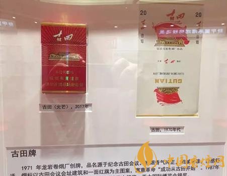古田牌,1971年龍巖卷煙廠創牌,品名源于紀念古田會議。煙標以古田會議建筑和一面紅旗為主圖案,寓意“成功從古田開始”。