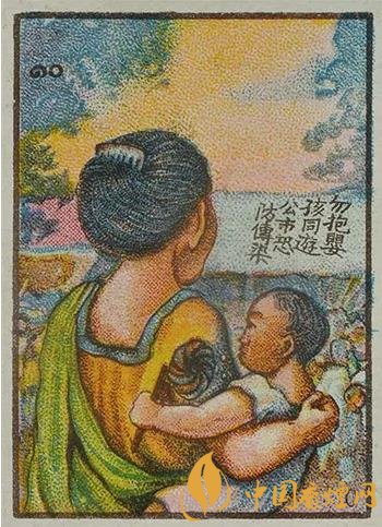 公共場所人與人相互接觸頻繁,易造成傳染病的擴散,體質比較弱的嬰幼兒更容易被感染。所以,不要帶嬰幼兒到人群密集的公共場所游玩。畫面中,一名婦女懷抱一個手拿風車的嬰兒,站在高處眺望遠處熱鬧的人群。