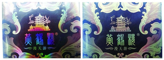 真品小盒正反面均采用具有黃色、紅色、紫色、藍色和綠色等干涉色的效果珠光油墨,在不同光線角度下會呈現(xiàn)出不同顏色,同時也具有能阻止掃描儀、電分機及彩色復(fù)印機的復(fù)制功能;假煙在不同光線角度無法呈現(xiàn)出彩色光線變化,因多采用高清掃描復(fù)制,其圖片多邊緣呈現(xiàn)顆粒粗大的網(wǎng)格狀,與真品材質(zhì)存在顯著差異。