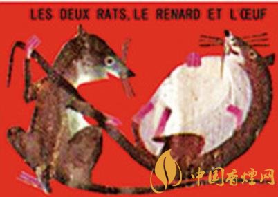 法國著名煙草經(jīng)銷機構(gòu)塞塔公司推出過系列伊索和拉封丹寓言卡通火花,其中的“鼠火花”內(nèi)容詼諧,十分有趣。《雙鼠、狐貍和雞蛋》(圖二)讓外界不要低估老鼠的智慧。狡猾的狐貍原本認定老鼠搬不了雞蛋,不料兩個耗子狡黠協(xié)作,一個躺倒抱住雞蛋的同時直接讓伙伴拽拉著它的尾巴,彼此安然回洞!《老鼠和牡蠣》(圖三)是說被誘惑和貪婪的后果很嚴重:內(nèi)陸之鼠初到海邊,看到張殼做日光浴的牡蠣新奇不已,竟一頭伸進殼中欲以秀色為餐,結(jié)果……即刻就要閉合的美艷景色不會免費啊!