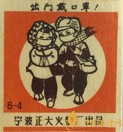 寧波正大火柴廠1964年出品的“兒童衛生”的套花,共6枚,分土黃、橘紅、淡綠、紫紅四色印制。分別是按時打預防針、服預防藥;咳嗽打噴嚏時遮口臭;不要隨地吐痰;出門戴口罩(圖5);室內陽光充足,空氣流通;發現病人,及時報告。這套火花,人物形象生動、宣傳內容通俗易懂,教育人們預防結核病,從日常生活細節做起。