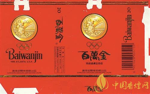 1996年,第26屆夏季奧運會在美國亞特蘭大舉行。上世紀90年代,廣東韶關卷煙廠出品了“百萬金”煙標(圖②)。該煙標以紅色為底色,主、副版上均印有金燦燦的奧運金牌以及奧運五環圖案,副版上還印有“1996 ATLANTA USA”字樣。
