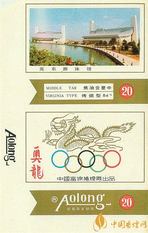 上世紀90年代,黑龍江富錦卷煙廠出品了“奧龍”煙標(圖③),主版畫面是霍英東先生捐資興建的英東游泳館;副版圖案上方是騰云駕霧的神龍,下方是奧運五環標志。湖北武漢卷煙廠咸寧分廠于同時期出品的“奧博”煙標,主副版畫面均為著名的古希臘雕塑《擲鐵餅者》,在其下方是奧運五環標志、橄欖枝和地球圖案。同時期,湖北鄖陽卷煙廠出品的“搏冠”煙標,主版畫面是一名男足運動員正在踢球;副版畫面是雙龍和足球,上方印有“沖出亞洲 搏擊奧運”的字樣。