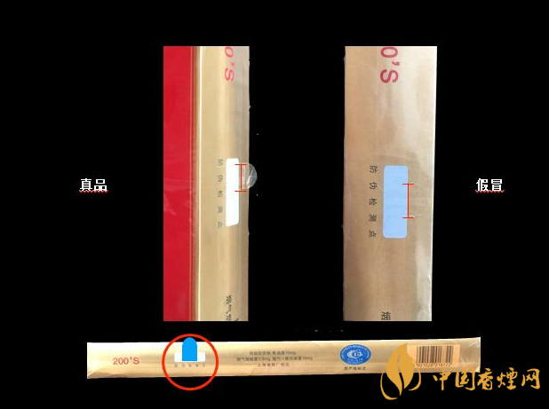 條盒拉帶的形狀是標準的半圓形,真品卷煙的拉帶寬度應為10mm,而假煙的拉帶大多數比較寬且形狀不標準。