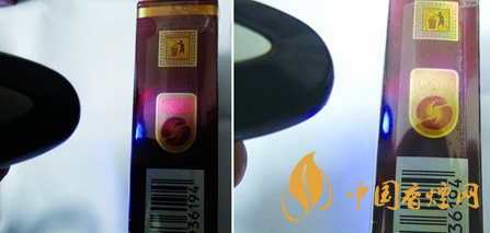 未采用熒光防偽技術時,觀察“防偽區”,真煙“防偽區”油墨厚,字體清晰;假煙反之。
