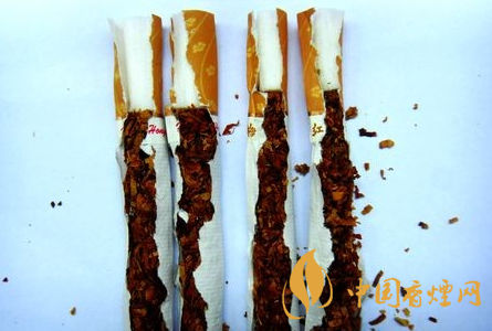 四、煙絲成色差異比對:真煙煙絲呈現出橙黃色,切絲寬度均勻且有油潤性;假煙煙絲呈現出淺黃色,切絲寬度不一,含末率較高,與真品煙絲成色比對存在明顯差異。