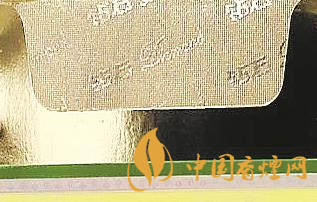 觀察條盒。真品條盒開啟處有顏色明快、層次分明的封口花專用防偽標簽。該標簽“荷花”文字采用專色金印刷,圖案采用精細鈔線技術、蝶影光變技術以及精細縮微文字印刷技術,變換不同角度觀察會看到不同顏色,通過10倍以上放大鏡可看到縮微文字。