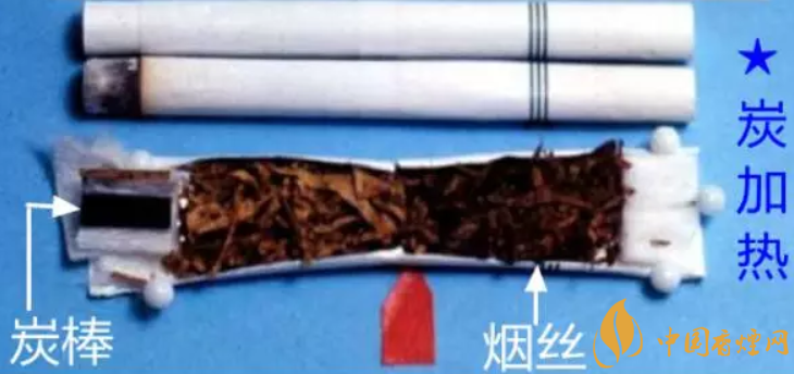 1、炭加熱卷煙,是在卷煙頭部加入一小段炭,點燃后產生熱量并傳遞給后部的煙草,進而釋放氣體。